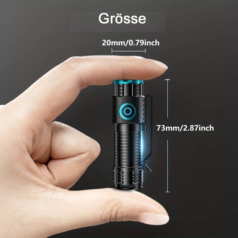 Leistungsstarke Backup Lampe, Wasserdicht und Staubdicht, USB-C Aufladekabel, 3 Lichtstärken, 1000 lm, 500 lm, 300 lm, ausgestattet mit einem Clip und starken Magnet, verfügt über eine Batteriekapazitätsanzeige.