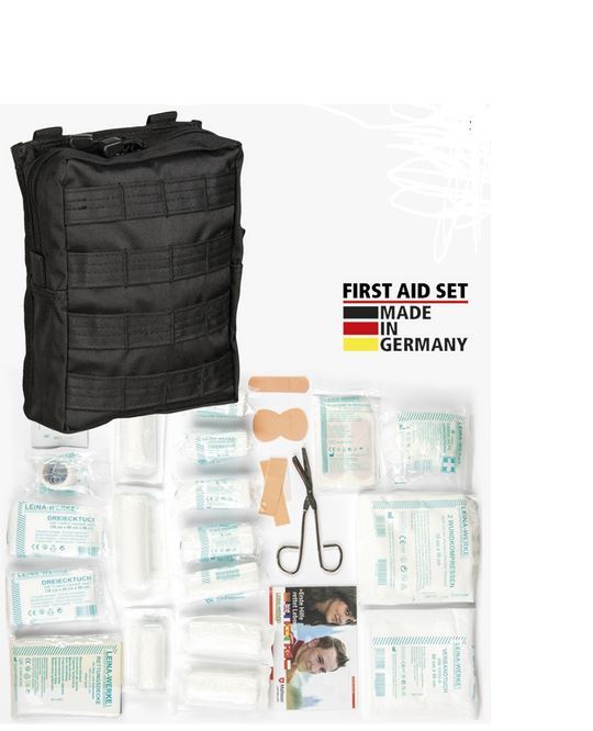 - Pflasterset: 4x Wundschnellverband 10 x 6 cm, 2x Fingerkuppenverband, 2x Fingerverband 12 x 2 cm, 2x Pflasterstrips 1,9 x 7,2 cm, 4x Pflasterstrips 2,5 x 7,2 cm