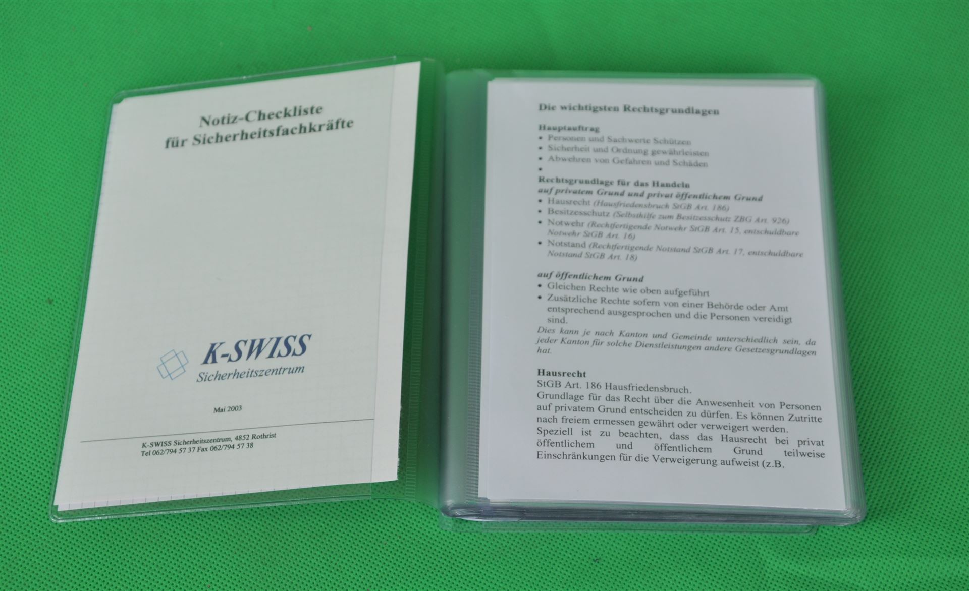 - beinhaltet Checklisten für Sicherheitskräfte wie z.B. Verkehrszeichen, 3-Punkt-Regeln, Funkzeichen usw.