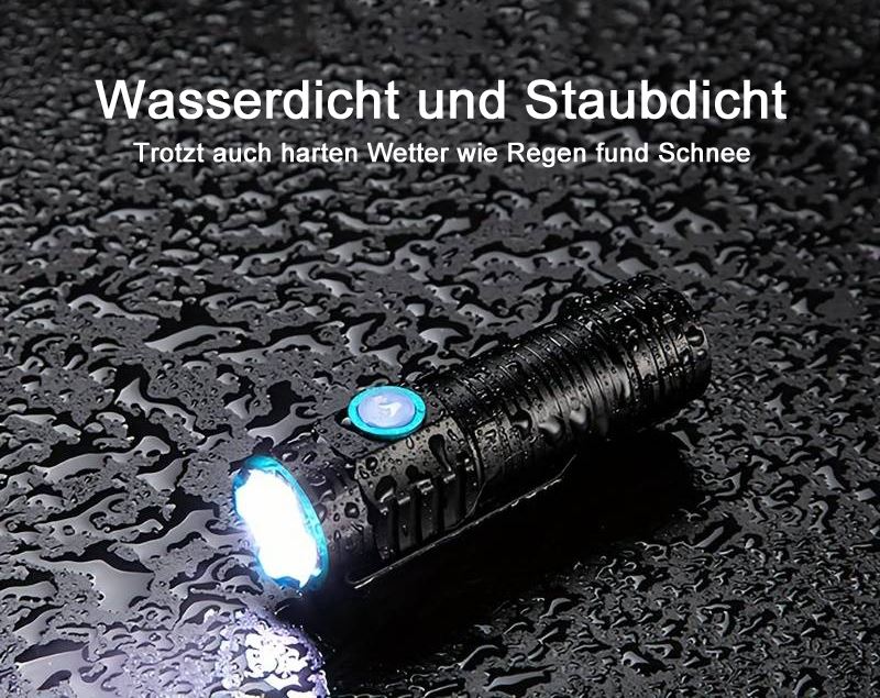 Leistungsstarke Backup Lampe, Wasserdicht und Staubdicht, USB-C Aufladekabel, 3 Lichtstärken, 1000 lm, 500 lm, 300 lm, ausgestattet mit einem Clip und starken Magnet, verfügt über eine Batteriekapazitätsanzeige.