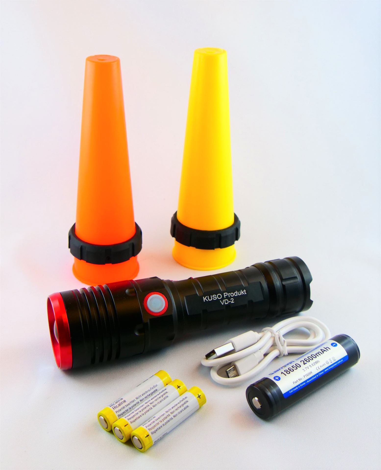 - Akkus, welche direkt in der Lampe geladen werden können.